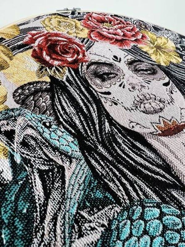 Deze houten borduurring is gevuld met een stevige gobelinstof waarbij motieven prachtig ingeweven zijn. Een echte eyecatcher voor degene die wel houdt van wat pit of humor in huis. En van dit exemplaar wordt je als stoere vrouw toch blij?! De Cool gril combineert mooi met stofringen met een effen of leren stof en houten items uit de NUUW at home collectie. Maar ook in zijn eentje komt deze stofring, mede door het mooie formaat, goed tot zijn recht.