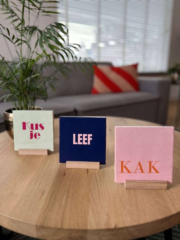 Zo blij met de keramieken tegeltjes in het NUUW at home aanbod! Deze serie van tegeltjes heeft vrolijke kleuren en korte sprekende teksten en woorden. Hélemaal van nu en perfect voor degenen die wel van wat pit en kleur in huis houden!